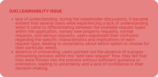 The current design of the "Add New Request" flow in the "DealApp" is confusing and does not offer consumers a clear visual hierarchy that directs them to choose the correct option. Cards representing each of these three alternatives are displayed on the main screen: new property requests, typical requests, and serious demands. Nevertheless, this layout has a number of problems, all of which contribute to the extremely high bounce rate.