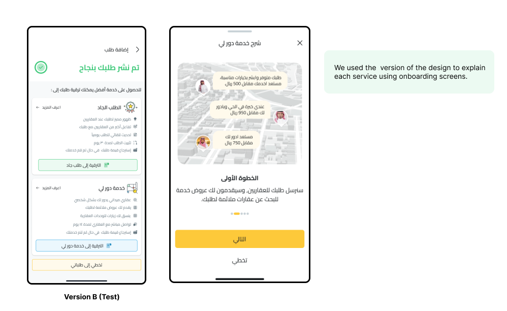 the results and recommendations of A/B testing conducted to compare two different designs in add new request to boost user engagement . The testing sought to assess the efficacy of two designs: Design A, which emphasised the benefits of each service without needing user onboard, and Design B, which included an onboarding procedure for users. This paper summarises the testing approach, significant findings.